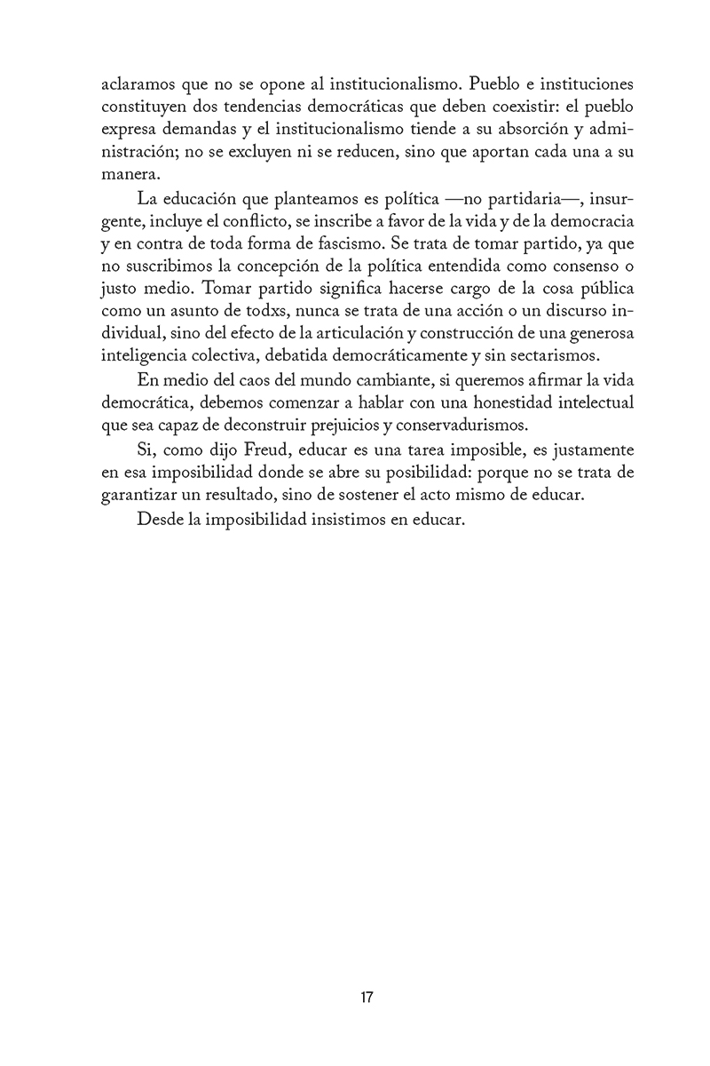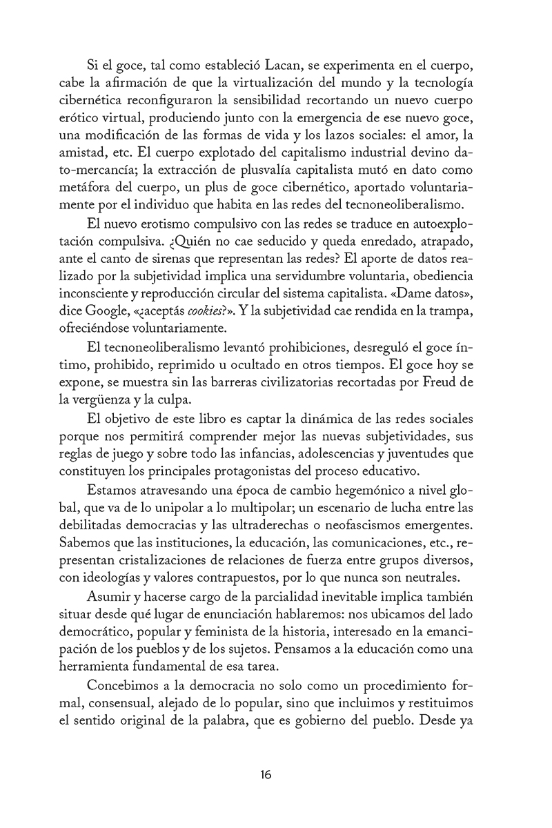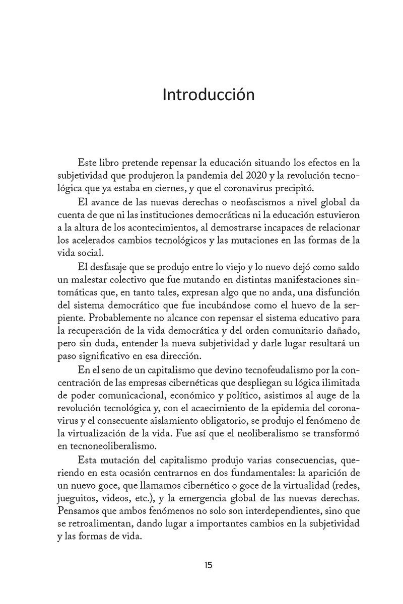 Un libro para comprender la guerra psicopolítica del siglo XXI y un desafío para todos los que creen en el poder transformador de la enseñanza. La democracia está en peligro. La formación es la última línea de defensa. La crisis del siglo XXI no es solo económica o sanitaria; es una crisis de la verdad. La escuela neoliberal, al buscar una educación sin política y despojada de derechos, terminó traduciéndose en educar para la servidumbre . Mientras las empresas cibernéticas consolidan el tecnofeudalismo y la mentira se vuelve total, el problema es eminentemente político. Este libro, dirigido a educadores, padres, estudiantes y ciudadanos, es un llamado a la parresía (a expresar la verdad sin miedo); es un llamado radical a la acción. Es hora de enfrentar la conexión entre la debacle educativa y el auge del fascismo, ocupar un lugar en la trinchera y reconstruir la ciudadanía. La única salida es reinventar la democracia y el sistema de enseñanza, generando un corte creativo ante la coyuntura actual. La solución es una pedagogía emancipatoria que oponga el amor político al odio fascista. Es hora de desobedecer el imperativo cibernético y hacer del acto de decir y amar la verdad la acción revolucionaria que puede salvar la democracia. La educación es una trinchera, una defensa para la participación ciudadana.