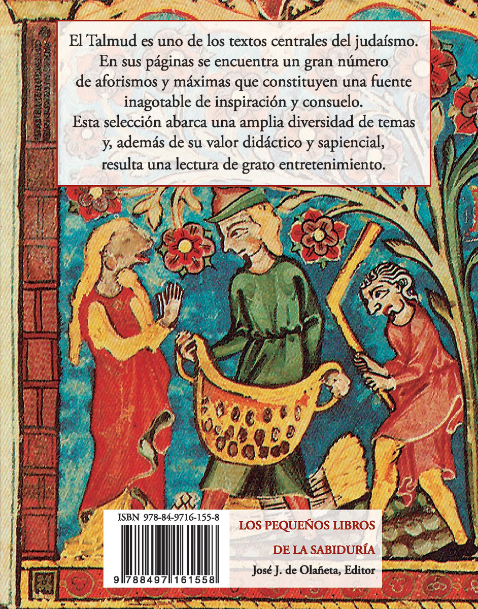 El Talmud es uno de los textos centrales del juadaísmo. En sus páginas se encuentra un gran número de aforismos y máximas que constituyen una fuente inagotable de inspiración y consuelo. Esta selección abarca una amplia diversidad de temas y, además de su valor didáctico y sapiencial, resulta una lectura de grato entretenimiento.