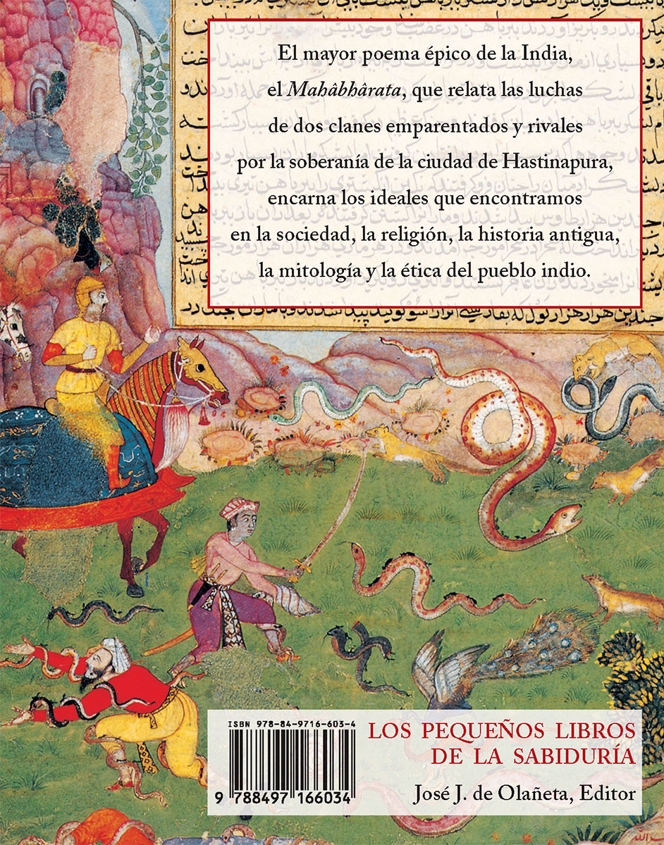 El mayor poema épico de la India, el Mah bh rata, que relata las luchas de dos clanes emparentados y rivales por la soberanía de la ciudad de Hastinapura, encarna los ideales que encontramos en la sociedad, la religión, la historia antigua, la mitología y la ética del pueblo indio. La saga nacional de la India es, sin duda alguna, el Mah bh rata, la más popular de todas las escrituras sagradas hindúes y un inmenso poema épico, que incluye, a modo de interludio, la Bhagavad G t (publicada en esta misma colección), epítome de las doctrinas sapienciales de la India. Es la historia de una encarnación divina, Krishna, entretejida en un extensísimo romance y epopeya militar de gran antigedad. Su tema principal es la gran batalla que tiene lugar entre dos familias de primos, los hijos de P ndu y los hijos de Dhritar shtra o los P ndavas y los Kauravas, o Kurus . A pesar de que, como es frecuente en la literatura antigua, otros numerosos relatos, de mayor o menor antigedad, se han incrustado en sus intersticios, este gran drama discurre con gran fluidez, lleno de ritmo y de color, de un extremo a otro del poema. La adaptación que presentamos, debida a Sister Nivedita y A. K. Coomaraswamy, conserva los episodios esenciales del relato y transmite a la perfección el poderoso y mágico ambiente mítico de la gran epopeya hindú.