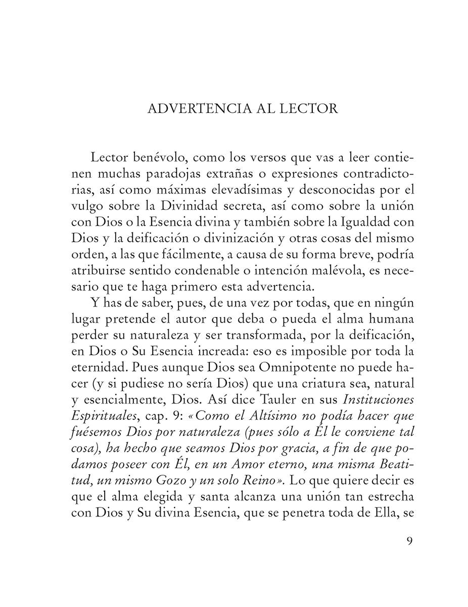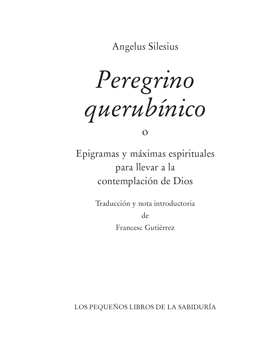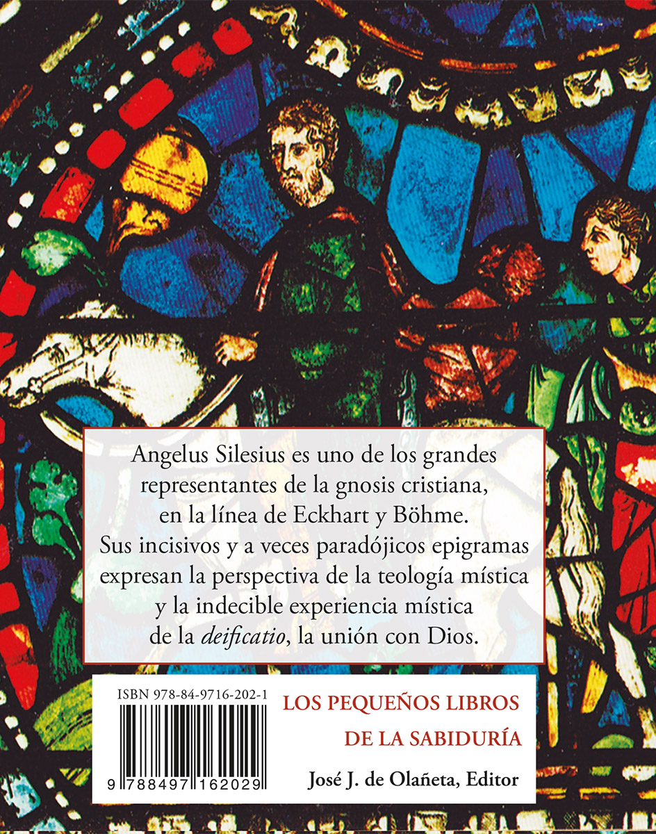 Angelus Silesius es uno de los grandes representantes de la gnosis cristiana, en la línea de Eckhart y B hme. Sus incisivos y a veces paradójicos epigramas expresan la perspectiva dela teología mística y la indecible experiencia mística de la deificatio, la unión con Dios.